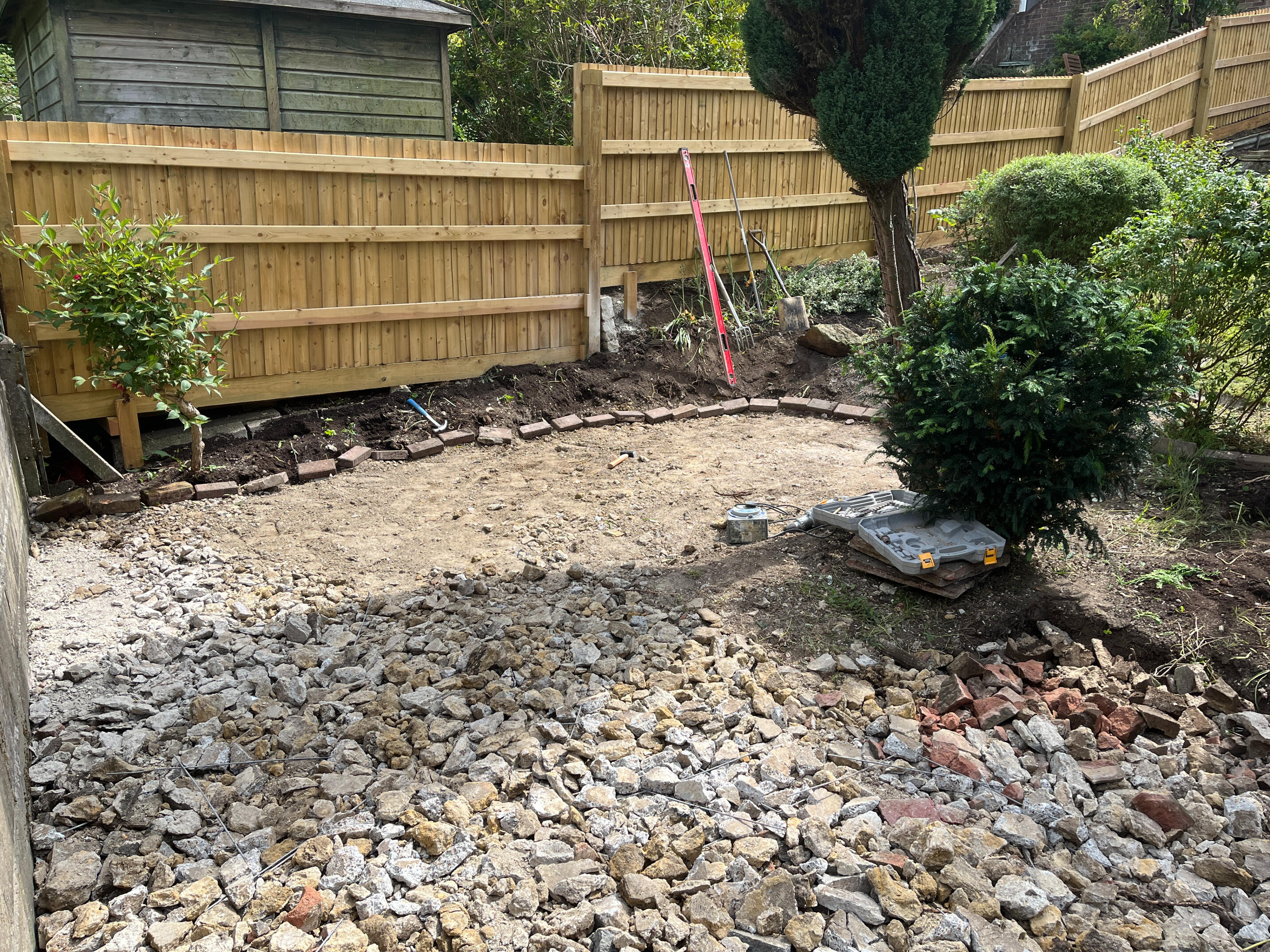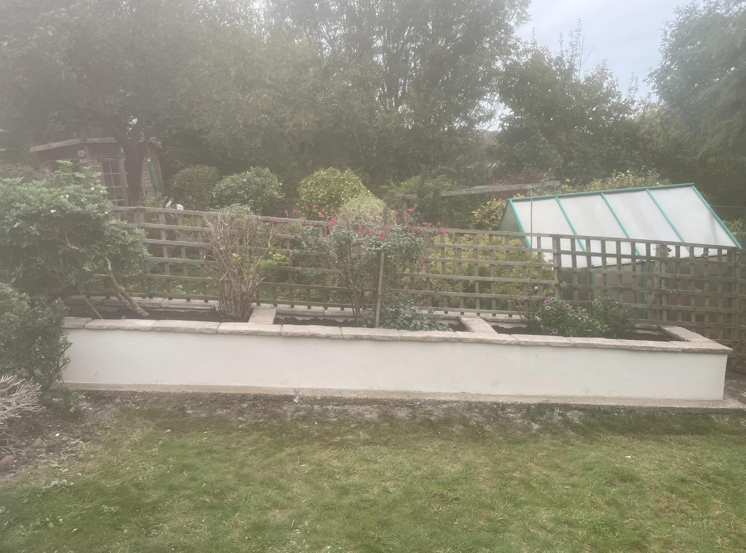 The work was to landscape a section of our garden into a lawn and flower border. The area had to be cleared and levelled. The area also sloped downwards and so a strong, retaining wall needed to be built. Victor consulted on all stages of the work and especially over which stone to use for the wall. Victor was consistently reliable and hard working. The lawn, wall and border has worked really well and we are very pleased with the result.