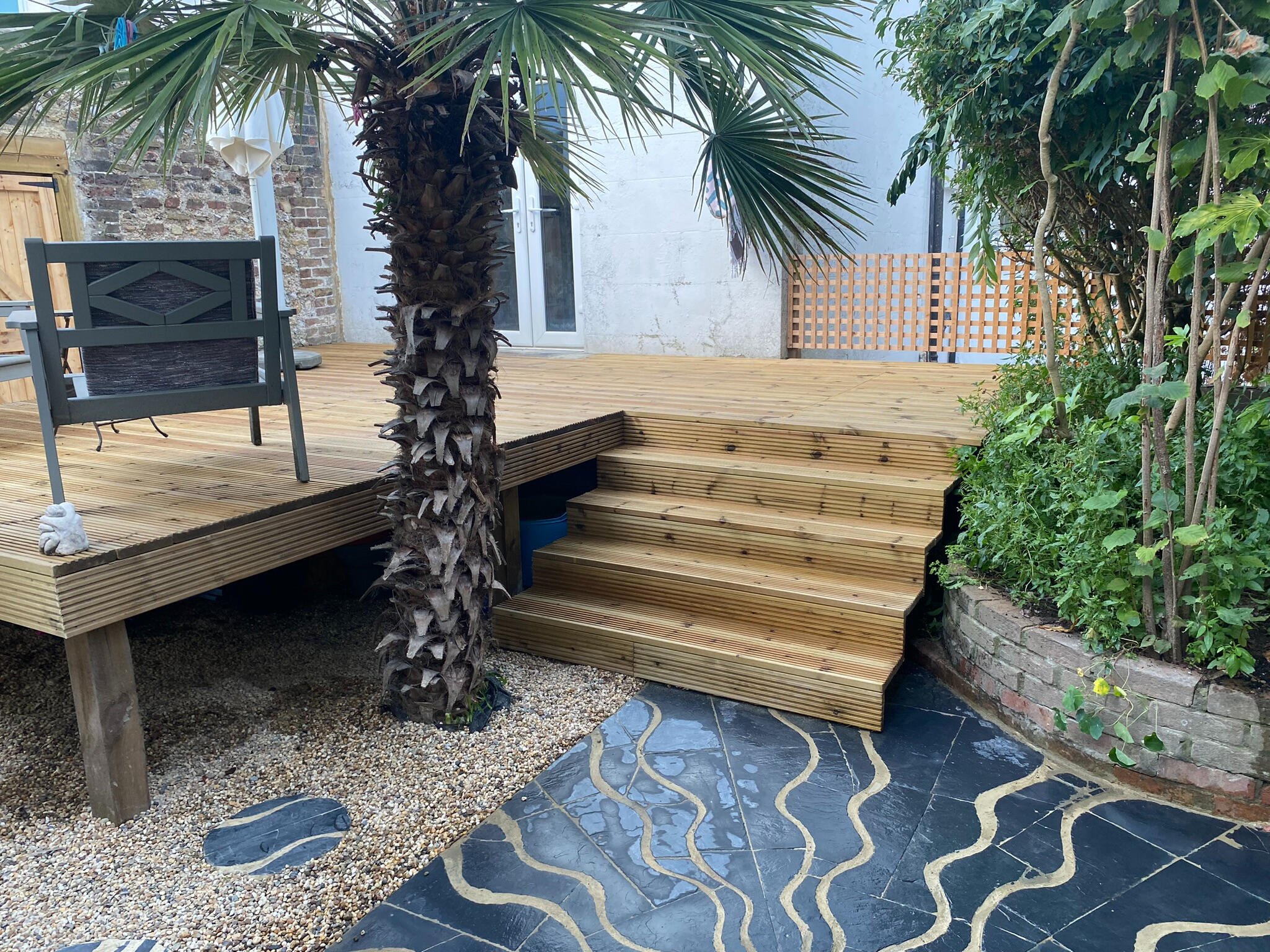Victor redesigned my garden area including designing bespoke pavings, installing decking, fencing and door. He did a stunning job. I would highly recommend Victor, he is professional, personable and does top quality work