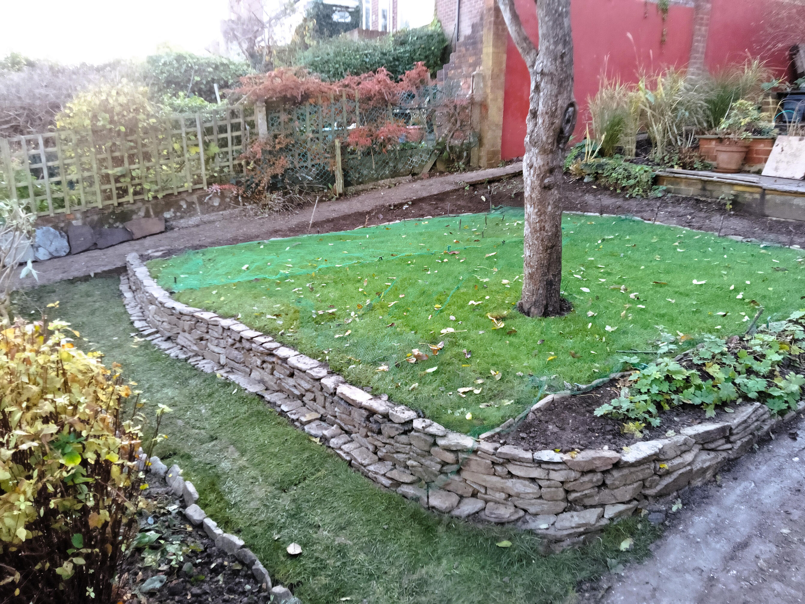 The work was to landscape a section of our garden into a lawn and flower border. The area had to be cleared and levelled. The area also sloped downwards and so a strong, retaining wall needed to be built. Victor consulted on all stages of the work and especially over which stone to use for the wall. Victor was consistently reliable and hard working. The lawn, wall and border has worked really well and we are very pleased with the result.